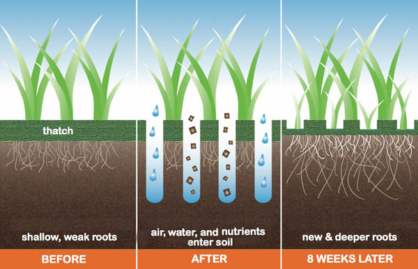 Aeration allows air, water, and nutrients to reach deeper into the soil, strengthening roots.